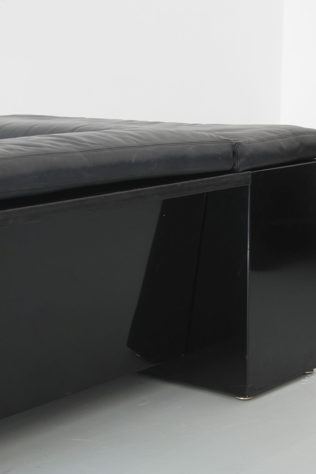A timeless design from the 1970s, the "Brigadier" 2-seater by Cini Boeri for the Italian company Gavina, later produced by Knoll International, is a true masterpiece. This sofa features exquisite black nappa leather complemented by a sleek lacquered wood frame.
