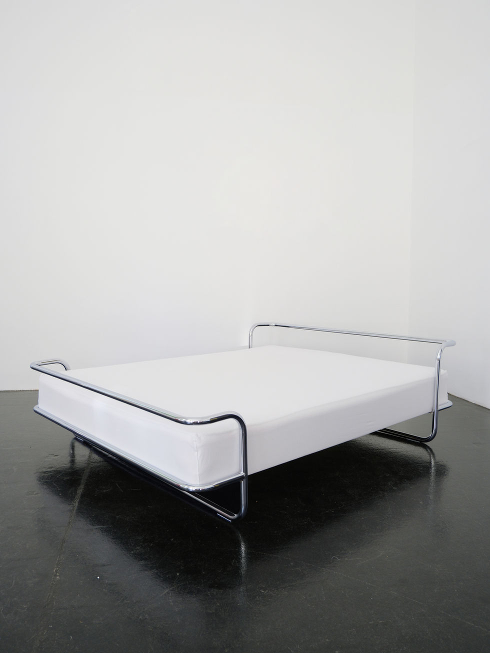 The iconic “Kromvik” bed, designed by Knut Hagberg for IKEA in the 1980s, is made from tubular steel and features a timeless design. This piece comes with its original mattress, which is still fixed to the frame. The middle wooden strip of the slatted base has been renewed, and a part of the chrome frame has also been replaced – but since it’s on the hidden inner side, you won’t see it once the bed is assembled.