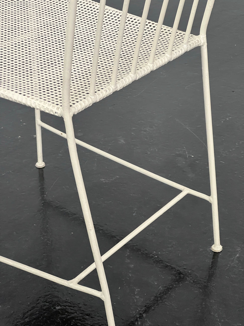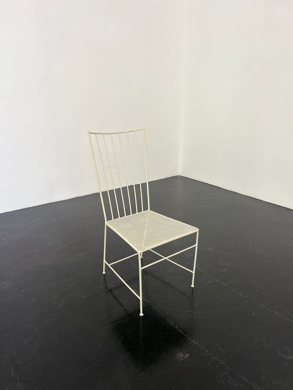 A minimalist icon of 1950s Austrian design, this rare "Sonett" chair was designed by architect Thomas Lauterbach and produced by Karl Fostel Sen.'s Erben. Its lightweight metal frame and airy wire mesh seat embody the elegance and functionality of postwar modernism. Perfect for indoor or covered outdoor settings.
